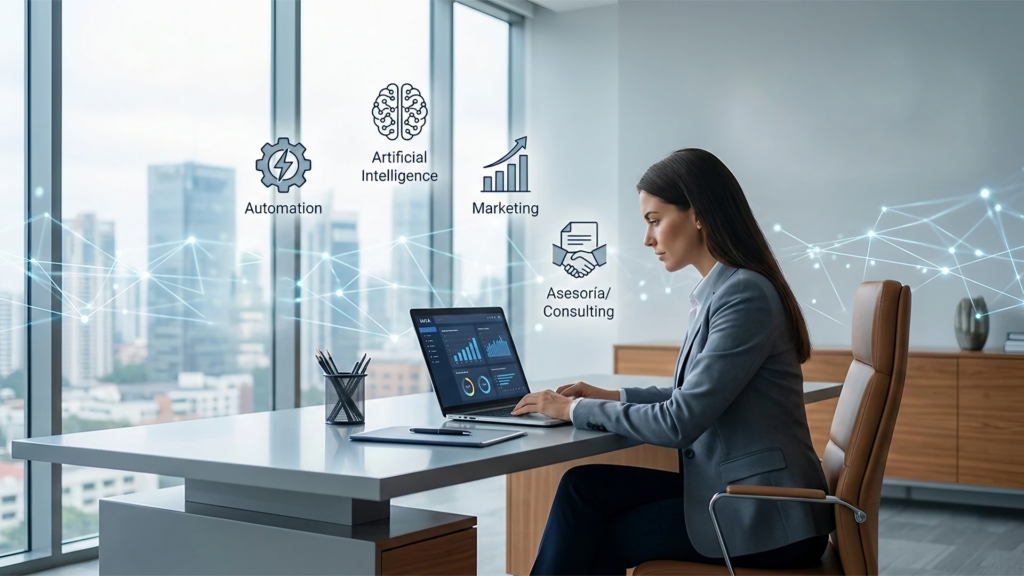 Ayudamos a equipos y emprendedores a construir negocios sólidos y escalables mediante estrategias de marketing, automatización e inteligencia artificial. Acompañamos cada proceso con soluciones prácticas que transforman ideas en resultados reales y sostenibles.
